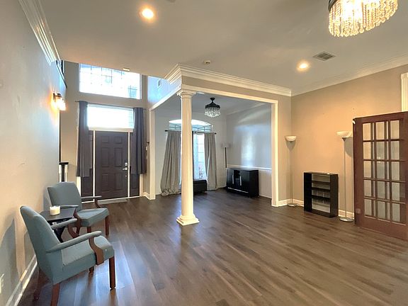 Step inside this beautiful two-story home where you will find luxury vinyl plank flooring in the main living areas and plush carpet in the office and bedrooms. Grand windows fill the main living area with natural light, creating a bright and welcoming atmosphere. The kitchen features an antique cabinet finish, granite countertops, a spacious island, and a cozy breakfast nook, along with a formal dining room for entertaining. You'll also enjoy the electric cooktop, wall oven, and stainless-steel refrigerator—perfect for home chefs. The primary suite is conveniently located downstairs with a walk-in closet, dual vanities, a relaxing garden tub, and a separate shower. Upstairs, two guest bedrooms are connected by a full Jack-and-Jill bath, and a charming balcony overlooks the light-filled staircase. Outside, enjoy a covered patio, fenced backyard, and a sparkling in-ground pool—ideal for relaxing or entertaining. The home's curb appeal shines with a grand entry, small courtyard, and mature landscaping. With a 2-year-old roof and listed at $290,000, this home is a true steal with all of it's wonderful features. Call today for more details.