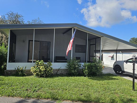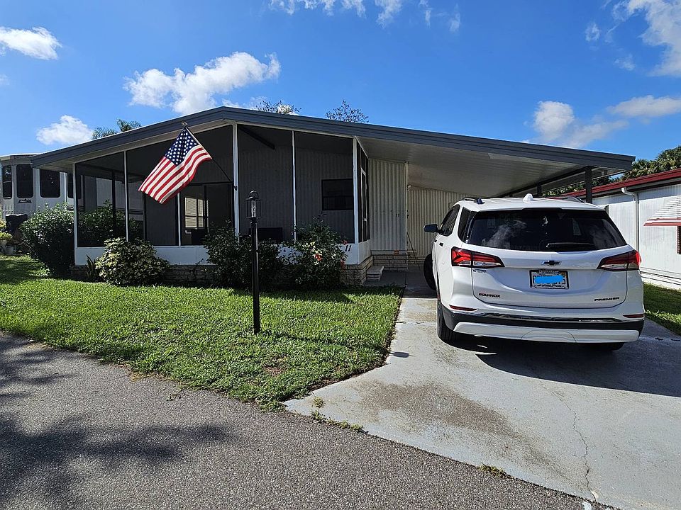 Fisherman's haven on Little Lake Harris! Join in the fun with the many fishing tournaments on the Harris Chain of Lakes or be a spectator for the numerous events that take place all year long. Built in 1985, this 2B/2b offers 1232 sq.ft. plus an 8x22 lanai and 8x11 built-on shed. New flooring and sub-flooring throughout this home and walls have been freshly painted. Washer and dryer are included. CHA replaced in 2023. This 55+ close-knit waterfront community allows pets 20lbs and under with site rent of $625 that includes W,S,T. Join your neighbors for weekly dinners at the clubhouse. Community also has a boat launch and covered boat slips are available for an additional fee. SC2250