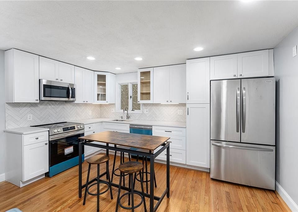 Welcome to your dream home! This fully renovated 3 bed, 1 bath ranch on a quiet dead-end road is the epitome of modern living, conveniently located near I-95, RT 2, and all amenities. Step into the heart of the home – a brand new custom kitchen that exceeds expectations. Luxuriate in undermount lighting, dovetail construction, slow-close cabinets, and quartz counters. The high-end sink with strainer, cutting board, and a thoughtful layout transforms cooking into a delightful experience. Hardwood floors flow seamlessly, enhancing the luxury. The herringbone patterned backsplash adds elegance. The breakfast bar fosters togetherness, connecting the kitchen to the spacious living area. Enjoy your large deck off of the kitchen, perfect for outdoor entertaining. Three inviting bedrooms and a full bathroom upstairs showcase thoughtful design. The lower level surprises with a generously sized finished room. Dedicated laundry, storage spaces, and utility areas enhance functionality. Escape to your private backyard, enclosed by a tasteful fence. Meticulous attention to detail, prime location, and modern amenities make this home a gem. Seize the opportunity – your haven of luxury and style awaits!