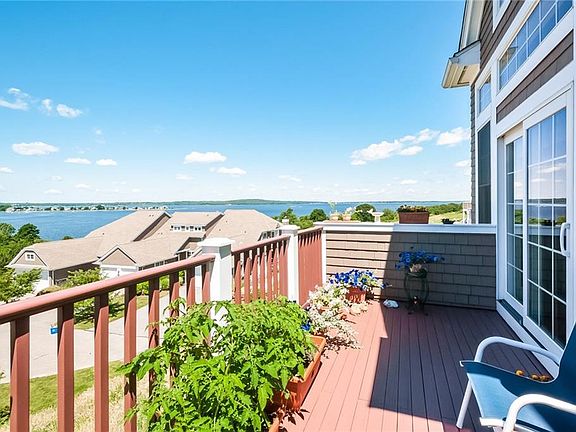 Well maintained townhouse condo with sparkling water views of Mt Hope Bay. Enjoy dazzling sunsets over the water! Highlights include 2 water view master bedroom suites (on 1st floor & on 2nd floor with a gas fireplace); gracious living room with cathedral ceilings, a wall of windows overlooking the water and gas fireplace; desirable open floor plan living room, dining area and gourmet kitchen; 1st floor office & additional office / den spaces on 2nd floor; and 1st floor laundry. Private outdoor mahogany decks with water views offer wonderful outdoor living space. The largest deck is accessible via sliders from the living room and 1st floor master bedroom & the 2nd deck is accessible from 2nd floor master bedroom. Spacious 2 car garage and plenty of storage space. The lower level is currently unfinished but offers expansion possibilities with its 8+ foot ceilings, rough plumbing for a bathroom, internal & walkout access via sliders, and windows providing ample natural light. The Villages on Mt Hope Bay is an exclusive 55+ waterfront community. Residents enjoy a large clubhouse (10,000 sq. ft.) with its heated outdoor swimming pool, fitness center, and great room with fireplace for private or community functions. The clubhouse is the hub for social activities and many clubs/groups such as book clubs, bridge, poker, garden clubs, golf outings, walking groups, & more. Conveniently located a short drive to Bristol, Newport or Providence and only 1 hour to Boston.