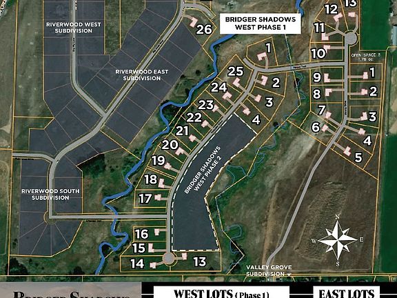 Welcome to Bridger Shadows, the newest community adjoining the popular Riverwood subdivisions, ideally located between Bozeman and Belgrade with a Bozeman address. This thoughtfully planned neighborhood offers 40 spacious homesites, ranging from 0.8 to 1.2 acres—providing the perfect blend of privacy, open space, and stunning Bridger Mountain views.