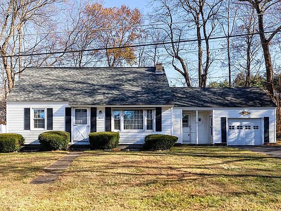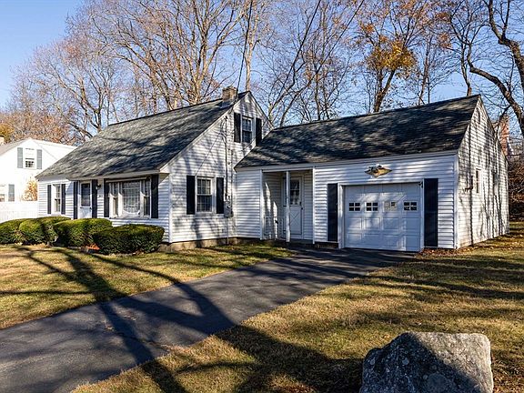 This charming New England cape will make someone a beautiful first-time home. Attached garage with work area leads to side foyer/breezeway with the laundry hookups and utility closet (which stores the boiler since there is no basement). Large eat-in kitchen with pass-thru to living room that has a breakfast bar. Excellent sized living room, updated first floor bath, and two additional bedrooms (or one could be used as a den/office). Second floor contains the remaining two bedrooms, each with built-ins and excellent storage. Lovely, level corner lot with private back yard. Phenomenal access to highways, Pike, Train (appx 3.5 miles away), 495.