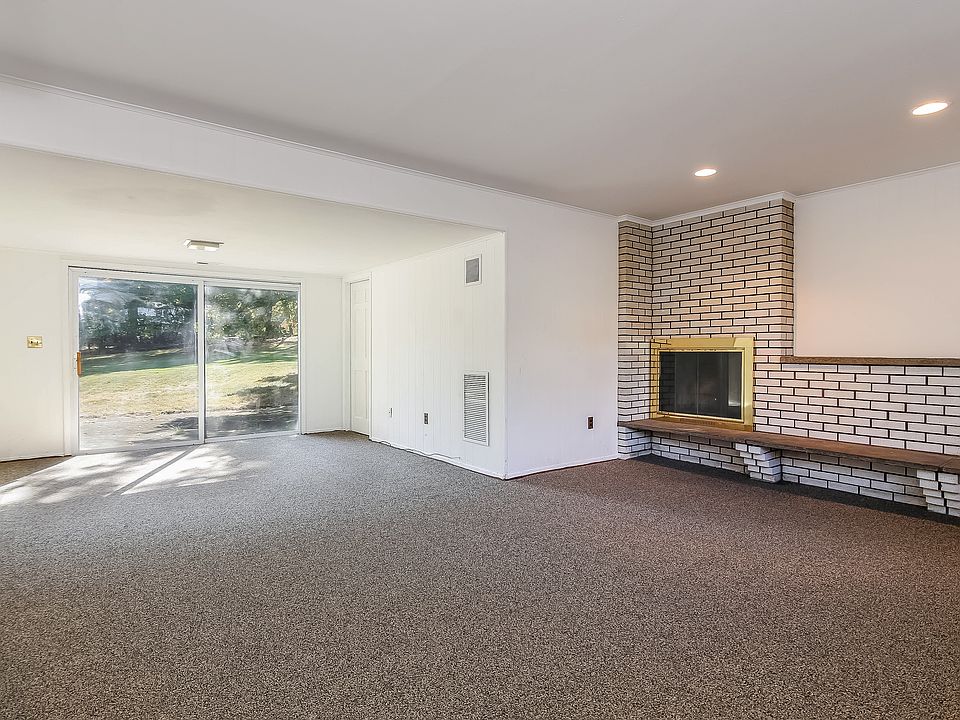 Groovy 1960's house with a cool family room on a level .5 acre. Follow the new masonry walkway and steps to the front door. The entry foyer leads up to a light and bright interior with newly refinished wood floors, large living room/dining area, eat-in kitchen, en-suite master bedroom, newer hall bath and two bedrooms. The kitchen, which needs a renovation, has sliding glass doors that open onto a large covered deck overlooking the sizable backyard. The entry foyer also leads down to the family room with wood burning fireplace, dry bar and sliders to the beautiful backyard. An office, laundry area, powder room and two car garage complete the lower level. Install a new kitchen and make a few updates and you will have a beautiful new home!