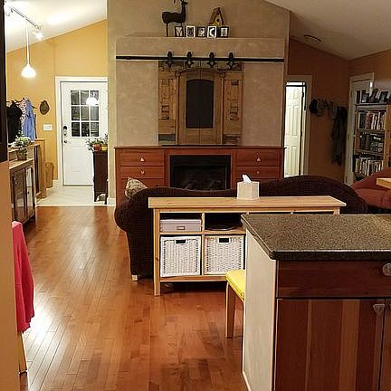 The home is a converted mobile home with a full basement and two cantilevered decks. 32 solar panels provide most of the electrical for much of the year. Master bath doubled in size in 2017 with barrier-free walk in shower room. 700+ sq ft living area has 11 ft vaulted ceiling encompasses open-plan kitchen/dining/living room with gas logs and built in tv nook with custom barn door enclosure.
