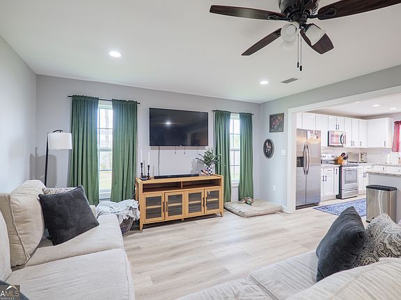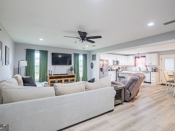Nestled on a sprawling 1.2-acre lot, this stunning 3-bedroom, 2-bathroom home offers the perfect blend of modern living and peaceful country charm. As you step inside, you'll be captivated by the open-concept design, which seamlessly connects the living, dining, and kitchen areas, creating a bright and airy feel. The home features beautiful Luxury Vinyl Plank flooring in the main living spaces, with plush carpeting in the bedrooms for comfort. The kitchen is a chef's delight, boasting sleek granite countertops and a full suite of stainless steel appliances. Both bathrooms are equally impressive, showcasing gorgeous tile work and matching granite countertops. Step outside and you'll discover a massive backyard, fully enclosed with a privacy fence, providing a secure and serene space for relaxation or play. The property also includes a 12' x 30' metal building with a 10' x 8' rolling door, perfect for a workshop, extra storage, or a place to park your favorite toys. For added peace of mind, the home is equipped with a generator transfer switch. This incredibly affordable home is located just minutes from Lakeland, GA, and offers a convenient commute to Moody AFB. With its generous lot, exceptional features, and ideal location, this property won't last long. Don't wait-make it yours today!