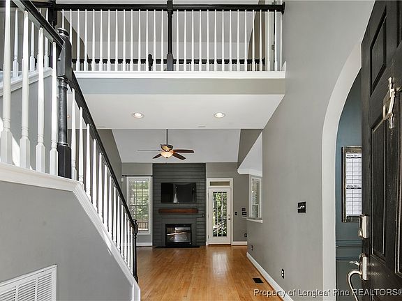 Nestled between mature pines in the exclusive Anderson Creek Club community, this 4-bedroom, 2.5-bath home sits on a peaceful cul-de-sac & backs up to the 18th hole of the golf course, offering breathtaking views from the backyard. Upon entering, you're greeted by elegant hardwood floors & a formal dining room, w/ a grand staircase leading to the second floor. The kitchen overlooks the family room, ensuring seamless interaction while cooking. The first-floor primary suite features tray ceilings, a custom shower w/ dual shower heads, a dual vanity, & a spacious walk-in closet. Upstairs, a catwalk w/ views of the family room connects two additional bedrooms, a full bathroom, & a large bonus room w/ a closet that can serve as a fourth bedroom. This home is equipped w/ high-speed fiber internet & enjoys the many amenities of Anderson Creek Club, including a community swimming pool, tennis courts, & more!