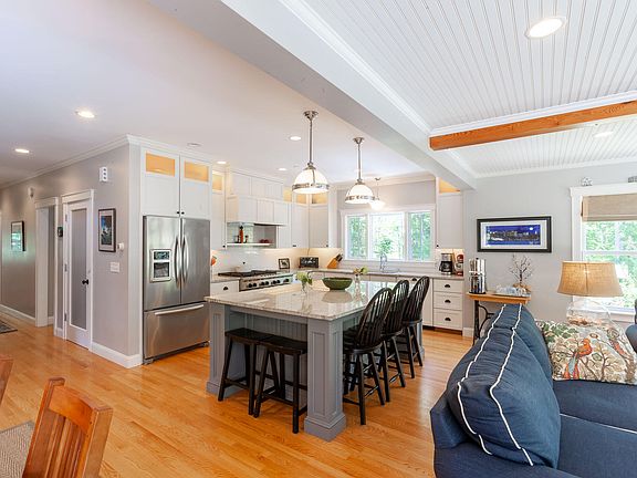 Rare one of a kind custom home with timeless finishes nestled on 10+- wooded acres. Enjoy optimum privacy with close proximity to popular Fortunes Rocks & Goose Rocks beaches. Wildlife abounds with the 'Little River' running across the rear of this property. Whether your hobbies include gardening, hiking, or bird watching this beautiful place is a nature lovers dream! Upon entry you're greeted by an expansive granite wood burning fireplace, flanked by custom window seats. The main level features an open floor plan kitchen, living and dining space. Designed to accommodate the most skilled chef, the kitchen boasts a professional range, oversized island and custom solid wood cabinetry. On the main level follow the solid wood oak floors to the oversized primary suite with custom built ins & walk in closet. The primary and second baths feature heated porcelain floors, a double vanity, large accessible walk in shower. Rounding off the main level, enjoy the convenience of a guest bedroom with adjacent 3/4 bath and a secondary laundry suite. Upstairs you will find two oversized bedrooms (23.5' x 11.5') joined by a large Jack N Jill bathroom. The lower level offers an additional laundry room with ample storage, oversized utility sink, and full-size refrigerator. A double bay garage and large storage room complete the lower level. Additionally you will find a third garage bay housing the current owners tractor attached to the 14' x 28' workshop. Beside the workshop enjoy gathering with family & friends around the oversized fire pit. Exterior features also include a hot tub, custom made outdoor shower, wrap around mahogany decks, and a screened in porch, all making this property ideal for entertaining. The opportunities to savor the natural tranquility of this homestead are infinite.