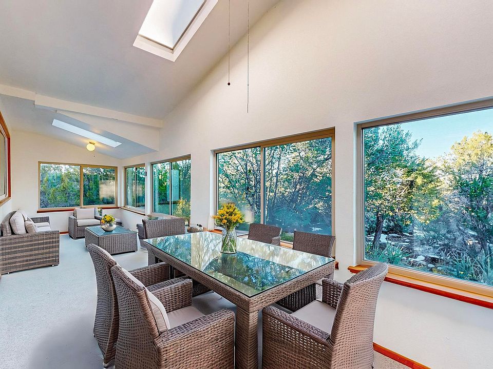 Escape to the peace and tranquility of this East Mountain retreat, set on a beautiful 2-acre wooded lot with stunning views and ultimate seclusion. This incredible property features a 1,982 sq ft main residence, a 725 sq ft cozy casita, and a massive 733 sq ft detached garage/workshop. The main house offers a comfortable and functional layout with 3 bedrooms, 2 bathrooms, 2 spacious living areas, a formal dining room, and an eat-in kitchen. Relax in the large living room with its cozy fireplace or bask in the warmth of the expansive heated sunroom with skylights. The kitchen provides ample cabinet and counter space, a pantry, and appliances, including an electric stove/oven and refrigerator. Enjoy meals in the formal dining room or the casual eat-in kitchen area. A charming...See More