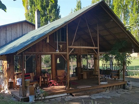 COUNTRY LODGE home on 1.2 ac near Okanogan. 2+bd/1.75 ba, LR w/wd stv, dining rm, updated kit w/appliances, util rm, enclosed back porch. Upstairs loft mstr suite, plus bonus room-poss 3rd bdrm. Mstr bath w/jetted tub, covered deck off loft. Partial bsment w/addit wd stove. Some upgraded wiring, plumbing, plus metal roof. Covered, newly stained front deck-w/swing. Huge barn/shop w/wd stv, loft, 2 lean-to's. Smoke house, garden, gated entry. Addtl cabin/bunkhse w/loft. $149,900 H-2395/MLS1019047