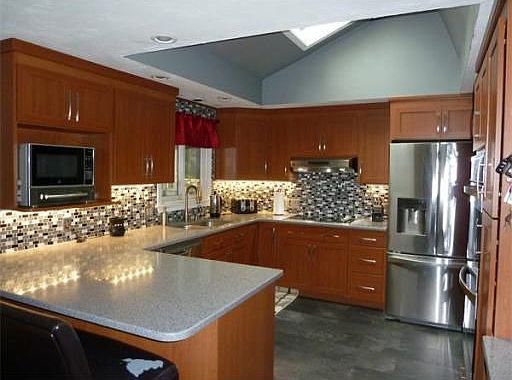 This house is made for entertaining!!! Family room add'n leads to 3-season porch which leads to deck! All new 1-yr young kitchen absolutely loaded with cabinets, 2 full pantry cabinets, 49 pull out drawers, quartz counters, glass backsplash, all stainless steel appliances including freezer & double oven stay. 18x36 ingrnd pool heated by gas. Huge 16x16 storage shed with loft. New high eff furnace, water heater & 1-yr old high end washer & dryer!. Bedford line location in subdivision neighborhood with easy access to Rt 3!