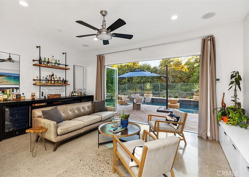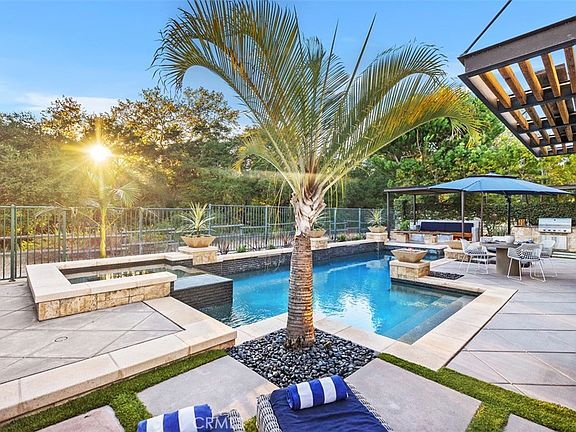 The home boasts a spectacular master suite, a true retreat with luxurious touches throughout, and one of the bedrooms is conveniently located on the main floor—perfect for guests or multigenerational living. The sleek chef's kitchen, featuring top-of-the-line appliances, flows effortlessly into spacious living areas drenched in natural light, creating an ideal setting for gatherings. Designed for easy indoor-outdoor living, the home’s La Cantina and sliding doors from both the living and family rooms open to the private backyard oasis. Step outside to a sparkling pool and ample space for outdoor entertaining, providing a perfect harmony between comfort and style. Modern conveniences abound, including solar panels for energy efficiency, an EV charger, and one of the home's garages currently outfitted as a home gym. These features, combined with the home’s chic Hollywood flair, make it both modern and refined. Coto de Caza is renowned for its exclusivity and scenic beauty, surrounded by rolling hills and nature reserves, yet conveniently close to top-rated schools, shopping, dining, and recreational activities. This home offers not only a prime location in one of Coto's most beloved neighborhoods, but also an elevated lifestyle that blends luxury with everyday comfort. Don't miss the opportunity to experience luxury redefined at 11 Lyra Way!