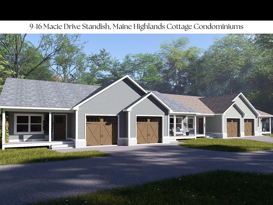 Welcome to The Highland Cottages. We are excited to present the newest and most exciting Condominium Neighborhood around! This 2 bed 2 bath single level ranch condo will feature a welcoming floor plan perfect for entertaining. Act now so that you have time to choose your finishes and hardware. All of the units have Public Water, Underground Utilities, Heat Pumps for heating/cooling, Radiant floors, a heated garage and more! Located in the heart of Standish you can walk to all that Standish Village has to share. As a resident of Standish, you also have rights to the resident only beach on Sebago Lake which is only a 5-minute drive away. The ideal location for outdoor lifestyle families. It's just 35 minutes to North Conway and 30 -40 minutes to downtown Portland. Special Note: 9-16 Macie Drive Condos are a different, larger floor plan than 1-8 Macie Drive Condos and include a front porch and a rear porch.