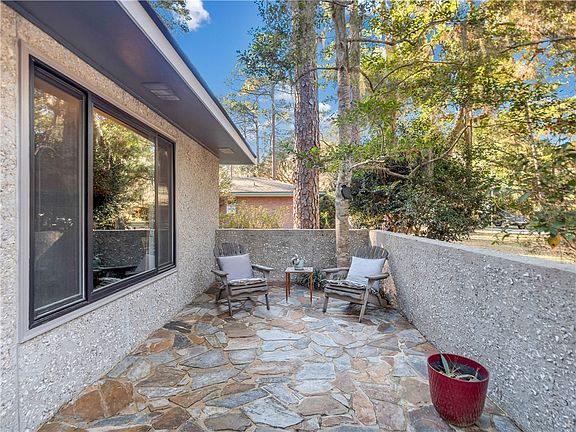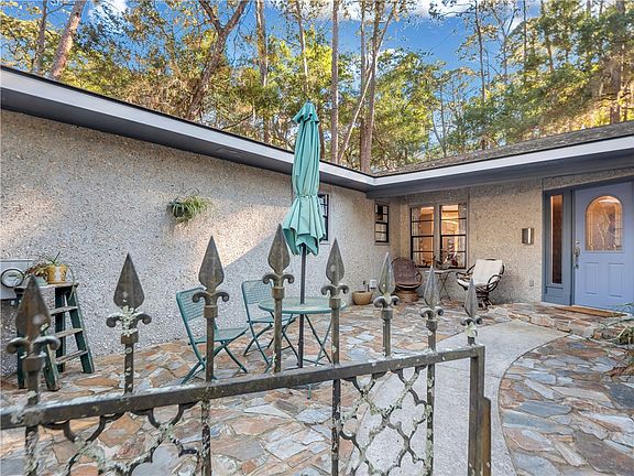 Exquisitely upgraded, this modern and luxurious Spanish Tabby Ranch home is ideally situated at the end of a peaceful cul-de-sac on Jekyll Island. The property is a very private nature lovers oasis. The back yard transitions to the protected and undeveloped Maritime Forest. Enjoy panoramic views from the tranquility of the Sunroom with beautiful wall to wall windows and coffered ceiling. Enter the Flagstone Courtyard surrounded by lush tropical landscaping through an iron gate that ushers you to the front door and into the lovely foyer with Vintage Spanish Arabesque Tiles. The open floor plan flows nicely into the living room with cozy wood burning fireplace that over looks the Sunroom. Gorgeous walnut stained ceiling headers give architectural flair to the upgraded kitchen with quartz countertops, large Island, professional appliances, ample modern cabinetry, and stunning wall tiles. Adjacent to the kitchen is a relaxing sitting room with modern wall cabinets. The large owner’s bedroom with en-suite bath is a spa like retreat. With gorgeous tile, rain head shower, hand held shower wand, double vanity with gray polished marble countertops and bench seat, and walk-in closet with adjustable organizing system. In this split floor plan home there are a total of 3 bedrooms and 2 baths, 2 car garage, large laundry/utility room. Other upgrades include: 3 blade ceiling fans, Fresh exterior paint, whole house surge protector panel, GAF Timberline Ultra HD Architectural roofing system w/50yr materials/labor & 10 yr manufacture workmanship Silver Pledge Warranty, sustainable up to 140 mph winds. (Seller has an inactive Real Estate License)