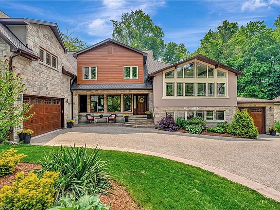 An incredible opportunity to live on one of the most sought-after streets in all of KW! From the moment you arrive you'll be captivated by the striking exterior! The exposed aggregate driveway (10 car parking) is perfectly complemented by three garage bays. Situated on a meticulously landscaped near half acre lot (100’ x 191’), an absolute showstopper inside and out. The expansive open-concept main floor design allows effortless entertaining and comfortable everyday living. The living room offers picturesque views to both the front and rear property, seamlessly flowing into a dining area with walkout access to the backyard deck. The oversized eat-in kitchen is a chef’s dream, featuring a 6-seater island and an abundance of cabinetry and prep space, with an additional corridor of custom cabinetry that leads to a sunken sunroom bathed in natural light. Upstairs, the impressive primary suite is lined with windows, creating a bright, airy retreat. A generous walk-in closet (potential for a second walk-in) complements the spa-inspired ensuite bath. Two additional bedrooms and a large storage room complete the upper level. The thoughtfully designed layout offers flexibility with a ‘secondary wing’, a perfect retreat for extended family or guests. This wing features a stunning living room with soaring vaulted ceilings and oversized windows, full bathroom, two additional bedrooms and large office. With two separate garage entrances, the home also features dual mudrooms, each with its own powder room. The traditional basement area is ideal for entertaining, providing ample space for gatherings and leisure. Outside, the expansive deck leads you to a beautifully private, landscaped backyard oasis. A rare find in the heart of the city! Situated mere steps from one of Canada’s top-rated golf courses, Westmount Golf & Country Club, and within minutes of the region’s finest amenities, shopping, & dining. This is an exceptional offering for those seeking both luxury and lifestyle.