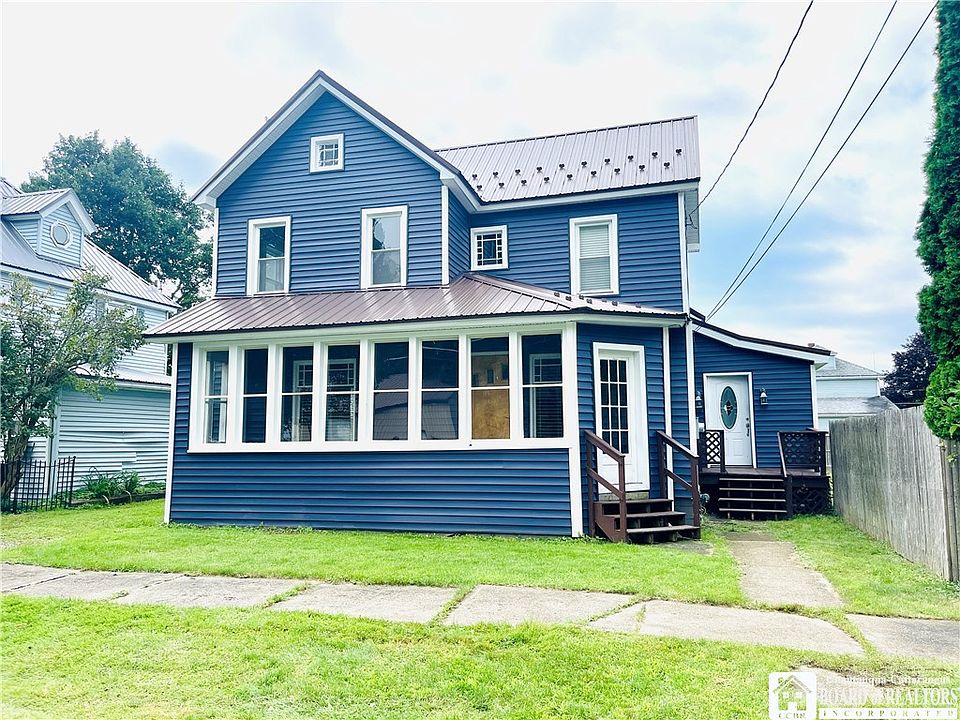 If a three bedroom, one bath house on a double lot in Southwestern School district; conveniently located close to shopping and the lake; is what you are looking for then this is the one! This two story home sits on a quiet neighborhood street with very little traffic. The large deck off the back of the house overlooks the fenced in huge back and side yard. There is also a two car garage at the back of the property. The house has two front entrances. One brings you to a long enclosed porch off the dining room and living room and the other brings you into a large entry room/ laundry room and on to the eat in kitchen. Upstairs boasts three bedrooms. New updates include; siding on the house and the garage 2023, new electrical service panel 2020, roof 2019, and gas furnace 2021 (never used as tenants choose to use electric instead, house has both heating sources). Five minutes from the lake and all shopping. At sellers request a deadline for offers has been placed for Monday 08/28/23 at 8:00pm. They will be presented Tuesday at 10:00am
