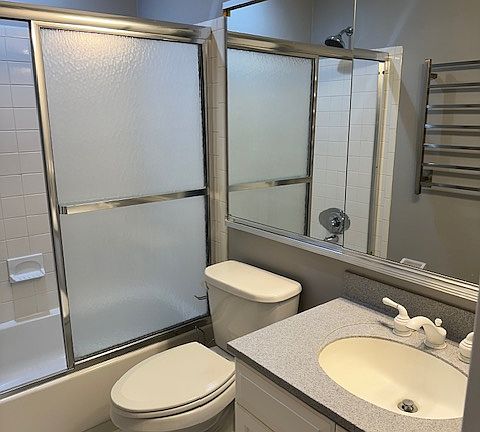 Heated towel rackSubway tileHeated floorsRenovated master bathNewer appliances