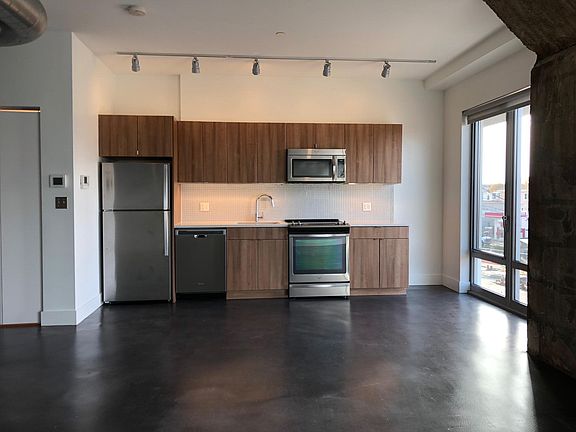 Strategically located on the Cambridge/ Somerville line this residence has it all from an amazing roof deck to your very own pet grooming station. This unique 1 bedroom features a combination of industrial materials and luxurious design. Renovated kitchen with quartz countertops and stainless appliances, open layout to living room, loft style living with barn doors to bedroom, modern bath and hardwood floors throughout. Unit also features central A/C, in-unit laundry and parking space included in rent. Amenities include a community lounge equipped with WiFi, catering kitchen and coffee bar, pet grooming station, fitness center and common roof deck stunning city views. All within a full service elevator building. Convenient to Downtown Boston, Kendall, Union Ave, Harvard and Davis Squares, Assembly Row, public transportation, shopping plaza, tons of restaurants and much more! Pets ok! Tenant pays for heat and electric.
