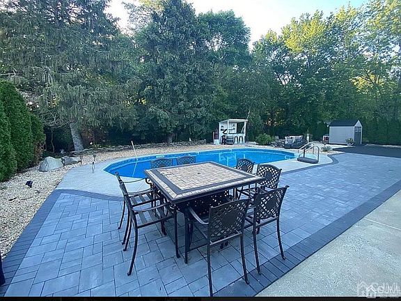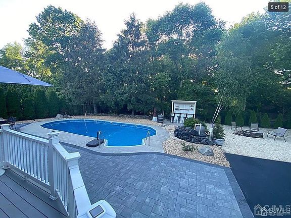 Starting July 23, 2023, come see this beautifully maintained ranch with a backyard oasis. This home sits on a secluded non-cut through street. Less than 1 mile from commuter buses and railroad. Newly refinished fully landscaped front and backyard. The backyard boasts a beautiful in-ground pool with LED lighting surrounded by concrete and newly installed pavers in 2021. Also, enjoy some relaxation time on the lounge deck over looking the pool. There is a separate fire pit area with plenty of room for outdoor furniture and a pool area bar. Enjoy the privacy of a wooded area on the rear of the property. The eat-in kitchen has been remodeled with new granite counter tops in 2021. Island seating for 6 around a cooktop. The dining room is connected to a step down entertainment area. The three bedrooms are down the hall with a full main bathroom and an owner's suite with a full bathroom. The unfinished basement is the entire width and length of the house which leaves the new owner with endless possibilities for finishing.