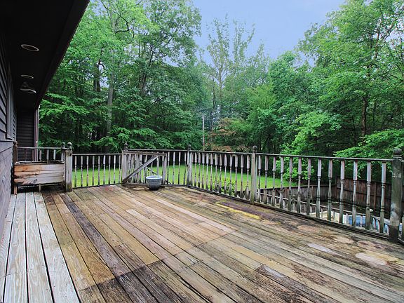 Private wooded setting, multi-level Tudor Style home on 2.62 acres. Enter through a double front door into a 2-story foyer, living room with fireplace, large primary bedroom suite with walk in closet, full bath with tub and separate shower, separate laundry room with built in desk, large kitchen with separate eating area with slider to deck, formal dining room, family room with fireplace and wet bar plus 3 additional bedrooms and a total of 3 full baths. Most rooms have hardwood flooring. Large basement with additional room, oversized 3 car garage, plenty of driveway parking, and IG pool.