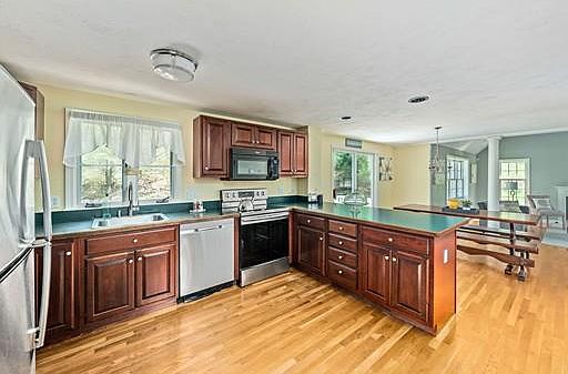WOW! You must see this stunningly beautiful home located on a desirable cul-de-sac in Millgate Estates. As you enter into the 2 story foyer and it just keeps getting better. You will love the casual & open floor plan as you step down past the big white columns into a spacious family room with tons of natural light and a gas fireplace. This home offers gleaming hardwood floors, formal dining room, central vac, cherry cabinet kitchen with brand new high end appliances, sliders to a deck over looking a private back yard and so much more! There is a full walk up attic w/ rough plumbing just waiting for someone to finish! A massive basement would make perfect family / game room. Easy access to rte 3, 44, 495, commuter rail, shops, schools, beaches, restaurants etc. 2018 Boston Globe named Kingston on of the Top Spots to live in under 500k price range. Welcome Home!