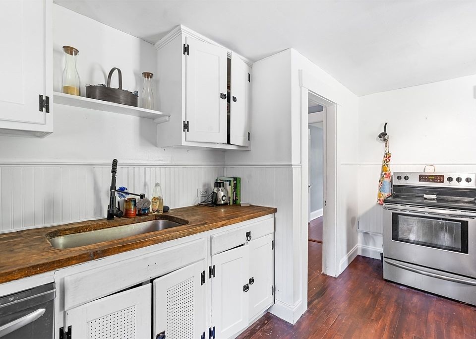 Modern kitchenQuiet streetHardwood floorsStainless steel appliancesFreshly painted interiors