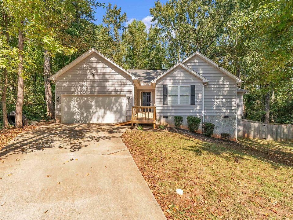 Welcome to 11 Misty Creek Court, a charming ranch home tucked away on a quiet cul-de-sac in Greenville. This 4 bedroom, 2 bathroom property offers 1,512 square feet of thoughtfully designed living space on a generous 0.56-acre lot. Built in 2007, the home has been updated with modern touches while maintaining its warm and inviting character. Inside, you’ll find vaulted ceilings that enhance the sense of space, a comfortable living area where the TV conveys with the sale, and a functional layout designed for everyday living. The kitchen features marble countertops, a subway tile backsplash, and a pantry for extra storage. The primary suite is a standout with brand new carpet, a large walk-in closet, a separate vanity, and a handicap accessible bathroom complete with a garden tub, separate shower, and luxury tile flooring. Additional interior features include a walk-in laundry room conveniently located on the main level, electric dryer hookup, ceiling fans, and smoke detectors throughout. Flooring includes a mix of carpet, laminate, vinyl, and upgraded luxury tile in the primary bathroom. Outdoor living is easy with a huge back deck perfect for entertaining, a fully fenced backyard with a privacy fence, and a front porch with a ramp/deck that can either convey or be removed depending on buyer preference. The lot also includes an extra paved pad for additional parking, mature trees, and a gently sloped terrain that enhances the setting. The home offers practical systems including electric forced air heating, central cooling, and an electric water heater, all supported by public water, sewer, and garbage pickup. Storage is abundant with space in the attic and a two-car attached garage. TV’s, Fridge and Security System Convey. Located just minutes from I-85 and US-25, this property provides easy access to Greenville’s shopping, dining, schools, and amenities while still offering the peace and privacy of a cul-de-sac lot. With its thoughtful updates, flexible accessibility options, and a blend of indoor and outdoor living spaces, 11 Misty Creek Court is a wonderful opportunity to own a move-in ready home in Greenville.