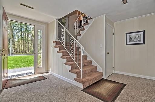 Not your typical Split Level home. Nestled on scenic Moose Hill Street, This home offers a spacious entrance way leading you up to a large, open living room and dining room. Updated kitchen with Corian counters and oak cabinets. Beautiful screened-in porch off of kitchen overlooks large private back yard. Hardwood under carpets on main living level. Lower level features Bonus bedroom or Family Room and plenty of storage space. 1 car attached garage. Updates include heating (Gas), central AC, Electrical panel, replacement windows and more. Enjoy all that Sharon has to offer, great schools, open space, Ward's Berry Farm, nature trails, commuter rail to Boston and Providence and proximity to major highway routes. Nothing to do but move in.