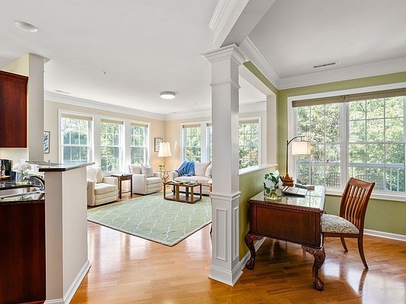 Perched above the treetops, this rare CORNER UNIT at South Natick Hills offers exceptional privacy, natural light, and space. The expansive Living Room is the heart of the home, with walls of windows that naturally flow into a sunlit Office/Den, a uniquely angular Dining Room, and a spacious eat-in Kitchen with a framed view. Step out onto your private balcony to enjoy the peaceful backdrop of the surrounding trees and walking trails. The oversized Primary Suite features a walk-in closet and a remodeled Bathroom with an expanded walk-in shower. The generously sized second Bedroom includes its own en-suite bath and large closet, ideal for guests. Additional highlights include gleaming hardwood floors, high ceilings, in-unit laundry, and 1 deeded garage space in an elevator building. Enjoy low-maintenance living in a pet-friendly, beautifully maintained community near Natick Center, the Commuter Rail, Sassamon Golf Course, shopping, dining, and major routes. Love Where You Live!