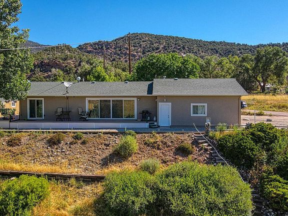 Riverfront, riverside, river access, private river access, fishing from backyard, river rafting accessible, riverside mountain retreat, short term rental, rural property, mountain views, one acre: have you searched all of these terms on the MLS and come up with nothing? Or when you have finally come up with a property it’s a million or more? THIS IS NOT IN THE FLOOD ZONE. You can run the next great riverside short term rental (newly established Airbnb - Fremont county allows it), retreat center, or enjoy the views every day as your primary residence and fish in your own backyard. The best feature is over 200 feet of private riverfront access. On the back deck looking across the river, mountain views fill the entire horizon and inside the home through floor to ceiling sliding glass doors this view is also unobstructed. Besides the view, all the river offers in recreation will keep you busy enjoying the area year around with fishing, rafting, animal sightings, hunting, hiking, ATVing, and exploring directly from the property. There is a pergola, walkways, garden areas, and firepit along the river. Skiing is 45 minutes away. Shopping and restaurants in Salida are a 17 minute drive, along with an extensive trail system for mountain biking, running, and hiking. The one level home has a bedroom and bathroom on each side separated by a large eat in kitchen, dining area, and living room. A one car garage is attached, another car can park in the detached garage near front west side of house, with additional space on the property for RV parking (and RV sewer connection) as well. Several other sheds provide storage space and one even provides a glamping opportunity! The stucco exterior, composite deck material, and native landscaping mean a low maintenance exterior year around. Whole house back up generator is included with property. The train tracks near the property are inactive and the home is not in the flood plane.