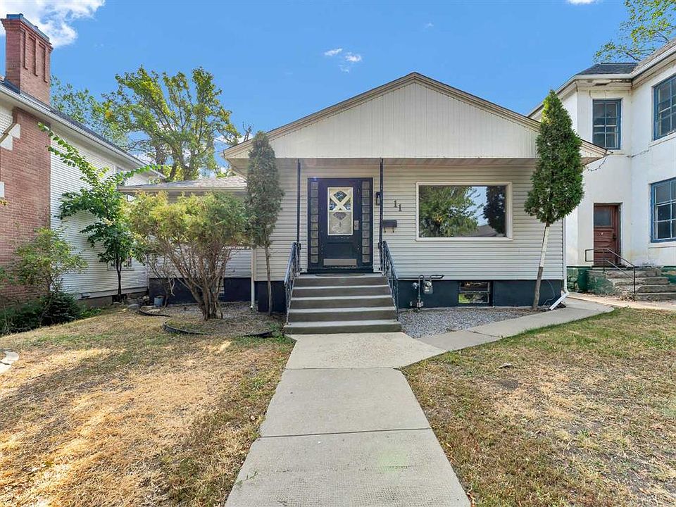 Welcome to this raised bungalow in the heart of Medicine Hat—where classic character meets today’s conveniences. Just a short stroll from the city’s library, Arts Centre, courthouse, city hall, and downtown shops, this home offers unmatched walkability. You’re only an 8–10-minute drive to either end of the city (Costco and the mall) and just a 3–4-minute drive to the hospital, schools, YMCA, Safeway on Division Ave., walk-in clinics, pharmacies, and gas stations. Be delighted to come home each day to the warmth of family gathered in the formal dining area and kitchen—the perfect space for sharing meals and moments together. Then unwind in the spacious living room, where the cozy glow of the gas fireplace sets the scene for cherished memories and holiday traditions. On the main floor, you’ll find a full bathroom, two bedrooms —including a primary with its own 2-pc bath, offering plenty of comfort for your family. The finished basement opens the door to so many possibilities. With its own entrance setup, two bedrooms (each with a living area), a full bathroom, laundry, and a kitchenette hookup, it’s the perfect space for extended family, guests, or even creating a cozy suite. Recent updates ensure peace of mind, including a hot water tank (2016), vinyl siding (2015), new roofing (2024), a refreshed deck (2024), new basement laminate flooring (2025), and fresh interior paint throughout. Step outside to an oversized deck and backyard designed to host summer barbecues, entertain friends, or simply unwind under the mature trees that create a private, peaceful atmosphere. Convenient outdoor access to a bathroom means no rushing indoors. As the sun sets in the west, you’ll appreciate the long, peaceful evenings in your own backyard retreat.
