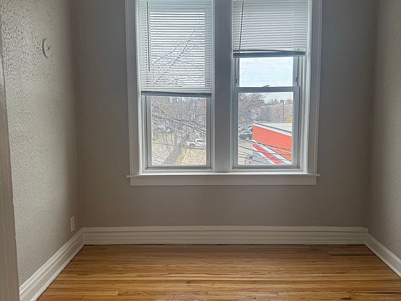 This updated 2 bedroom, 1 bathroom apartment offers freshly refinished hardwood floors, good natural light, and a clean layout. The unit features an updated bathroom with a new vanity, a bright kitchen with a newer refrigerator, and freshly painted walls throughout. The building does not have laundry, but a laundromat is located one block away. No pets are allowed.