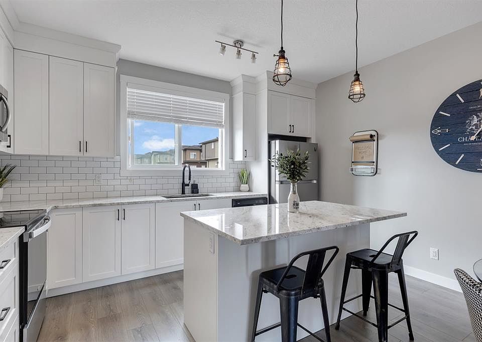 ***Open House Sunday October 5th from 2:30-4:30pm** Discover elevated living in this beautifully crafted townhome, perfectly situated in the heart of Sage Hill NW Calgary. Just steps from a family-friendly playground, this residence combines luxury, functionality, and community charm in one remarkable package. Designed with a sought-after double master layout, this 2-bedroom, 2.5-bath home spans over 1,200 sq. ft. of stylish, low-maintenance living. Inside, you’ll find a host of builder upgrades including sleek granite countertops, custom shaker-style cabinetry, premium vinyl plank flooring, soaring ceilings, a full stainless steel appliance package, and elegant full-height tile in all baths and showers. The glass-paneled balcony with a built-in gas line offers the perfect spot for outdoor grilling and entertaining. Bright, sun-filled interiors flow effortlessly through the open-concept floor plan, with oversized windows on every level creating welcoming spaces that feel like home from the moment you arrive. The convenience of an attached tandem double garage with a full-length driveway allows parking for up to 3 vehicles, along with additional guest parking nearby along Sage Bluff Gate. Blending modern style with everyday comfort, this home offers exceptional value in one of Calgary’s premier NW communities. With quick access to shopping, public transit, playgrounds, and scenic walking and biking trails, this is an opportunity you won’t want to miss. Book your viewing today and come find out what makes Sage Hill a terrific community to call home!