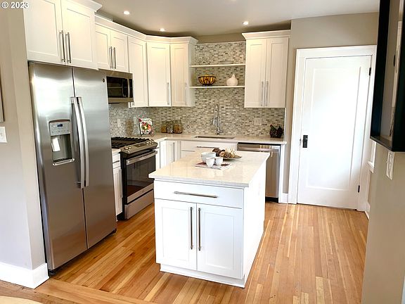 Dream Kitchen, New Int & Ext Paint, New: Kitchen Cabinets, Garnet Counters, Stainless Appliances, Lighting, Landscaping, Deck, Landscaping, & Driveway, Updated Wirsbo Water Lines & ABS Drains, 96% Efficient Gas Furnace & Central A/C, Low-E Vinyl Windows, Clean Sewer Scope, No Oil Tank.83 Walk Score & 84 Bike Score. Owner is licensed broker. Garage/ shop will have new roof by 4/26. Great storage in walk up attic. Fenced yard and perfect area for fire pit. New deck. 6 minutes to download Portland. Master with walk-in closet and 2nd closet. [Home Energy Score = 6. HES Report at https://rpt.greenbuildingregistry.com/hes/OR10214579]