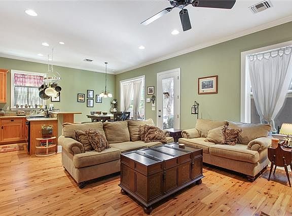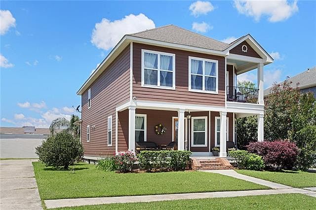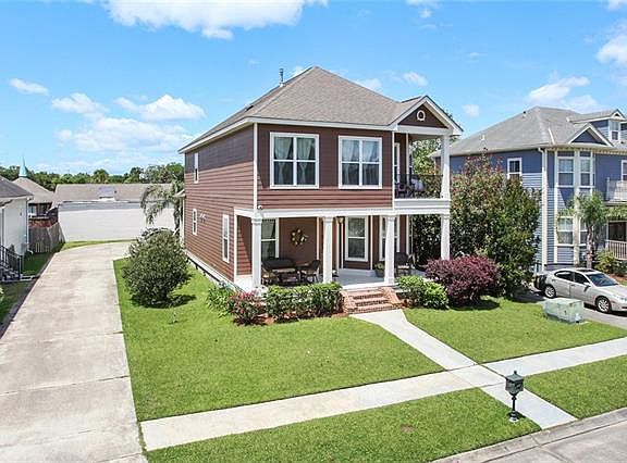 Live in the gated community of Aurora Riverside, a beautiful collection of 31 New Orleans style custom homes. The community is located on the Mississippi in Algiers. The main house consists of 4 bedrooms and 3 full baths, and has 10 foot ceilings downstairs and 9 foot up. Common areas include Australian Cypress floors, Custom cabinetry. The detached building housing the garage includes a studio apartment with bedroom (not included in bedroom count) full bathroom and kitchenette for your guests.