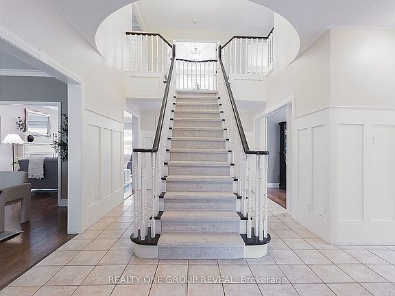 Tucked away on a private cul-de-sac in the established Queens Common community, this beautifully designed Monarch built model home offers abundant space and versatility for multigenerational living with the elusive grand Scarlette O' Hara staircase entrance. Backing onto lush parkland, conservation area, and a peaceful creek, the property delivers privacy and serene views from every window and established perennial garden beds. Inside, find an expansive open layout highlighted by a large family room, elegant dining and living spaces, and a dedicated breakfast nook perfect for daily gatherings. The upper-floor office and a spacious attic loft with ample storage areas, bedroom and washroom provide ideal options for home offices, guest suites, or retreats for teens and in-laws. Four well-sized bedrooms, including a grand principal suite with an elevated sitting area, and two bedrooms in the basement suite with full kitchen, living area and egress window ensure room for everyone. Enjoy convenient access to top-rated schools, mature parks, and vibrant community amenities including downtown Whitby, the Whitby Library, and Highways 401 and 412 only minutes away for commuters. Modern upgrades include an EV charger for electric vehicles, Central Vacuum and 2x electrical panels in basement. Set among mature trees and proud neighbours, this home invites you to relax in its tranquil setting while still being close to every convenience. Experience the best in luxury living, privacy, and nature all in one exceptional residence.