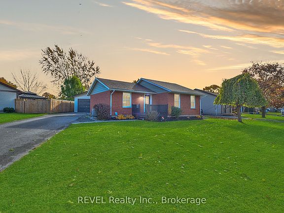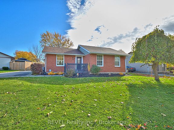 Welcome to this fully updated bungalow located in a quiet family friendly desirable north end location on a quiet dead end Crescent, close to A+ schools, highways, Niagara College, YMCA, and more! This fully updated bungalow is move in ready, with just under 2000 sq.ft of total finished living space top to bottom, featuring an open concept design and modern contemporary décor. Modern custom kitchen with new shaker style cabinets, quartz counters, stainless steel appliances, classic subway tile backsplash with island for bonus seating. There is a family sized living room/dining combo with patio doors leading you to the large rear yard with interlock brick patio to enjoy some peace & privacy. Three spacious bedrooms on the main floor with a custom main level bath with custom ceramic tub surround. The lower level features a separate entrance from the backyard for in-law suite, or extra income possibilities if desired.. Large Recroom to fit all the families needs, gas fireplace, a 4th bedroom and a second 4 piece bath with laundry. Deep oversized detached garage with hydro, this bungalow has it all at this price point! Other features and updates include; Garage roof (2025) Double wide Asphalt driveway (2023) Luxury vinyl flooring throughout both levels (2023) Roof/Facia/Soffit/Eaves (2021) Furnace/A/C, & Windows all replaced in (2021). 200 amp service, hydro in garage. All this on a large reverse pie shape Lot with truly nothing to do but move in and enjoy!