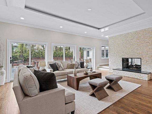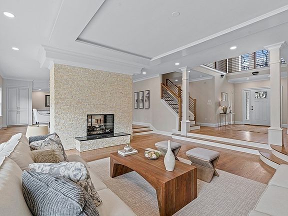 TOP Waterside neighborhood! This custom, impeccably renovated and re-designed home offers a top location across from Mystic lake with direct private/ deeded water access allowing for kayaking, sailboats/paddle-boarding/fishing right outside your door! This grand home boasts high ceilings w/ gorgeous new hardwood floors throughout.Wolf/ Sub-Zero kitchen with inset custom cabinets, quartz countertops & backsplash, oversized island, 2 dishwashers, wet bar w/ wine fridge, stunning ballroom sized family room w/ stone fireplace plus formal living and dining complete with LED tray ceiling lights and 2 sided fireplace. Direct entry mudroom, 1/2 bath, 1st floor guest suite w/ full bath, plus home office. Walls of windows overlooking the rear yard w/ sliding doors to an entertainers dream w/ bluestone patio and yard. The second floor features 4 large bedrooms/ 3 baths incl. a stunning primary suite w/ water views, gorgeous spa like bath, 2 closets, sliders to private deck. 3rd floor& LL finished
