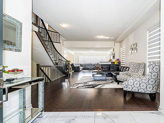 Welcome to this executive home in Whitby's prestigious Rolling Acres community! This rare 4+3 bed, 6 bath beauty offers over 4,000 sq ft of luxurious living with over 150K upgrades, no carpet throughout. Features include a private interlock driveway, front porch, double garage with direct access, and a partially 11 ft main floor with 8' doors, 3-sided gas fireplace, and main floor laundry. The chef-inspired kitchen boasts quartz counters & Backsplash, S/S appliances, undermount sink, pantry & ample cabinetry. Elegant oak staircase with wrought-iron pickets leads to a 10 ft ceiling family room-perfect for relaxing or entertaining. The primary suite offers 10 ft ceilings, his & her walk-ins, and a spa-like 5-pc ensuite. All secondary bedrooms have semi-ensuites; 3rd bedroom opens to a front balcony with neighborhoods views. Lots of Pots lights, 200 AMP Service, Beautiful Zebra Blinds, Enjoy a fully fenced backyard with an 8' x 6' deck With Natural Gas Line for BBQ & outdoor entertaining. Cat 6 Wired, Finished walk-up basement with 3 beds, 2 baths with high-ceiling, upgraded kitchen & laundry-ideal for extended family or rental income. Close to top schools, parks, shops & Hwy 412/401/407. A true must-see "Video Tour"!