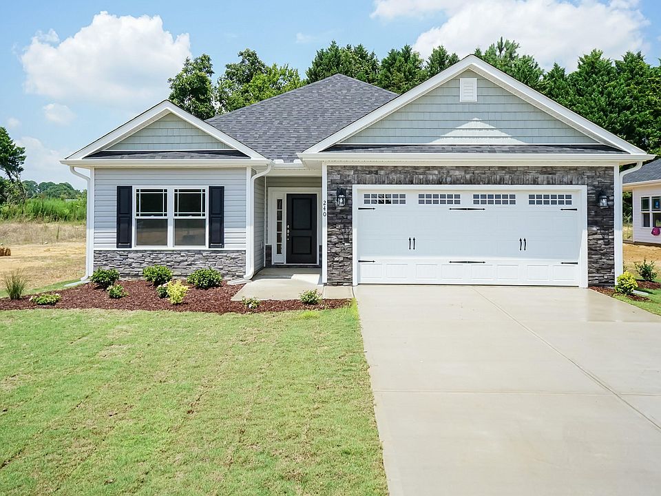 This home is Under Construction. NEW TRIM, LIGHTING, PLUMBING & HARDWARE PACKAGES!!!! Get ready to fall In love with this ranch home! This hidden treasure boasts 3 bedrooms and 2 bathrooms across 1,634 square feet. Upon entering you will quickly find this thoughtfully designed floor plan that enhances both style and functionality with the laminate flooring in the main living areas. Adore the modern kitchen featuring breathtaking granite countertops, upgraded stainless steel appliances, Ceramic tile Herringbone backsplash and pantry. The kitchen opens up into a breakfast nook with crown molding and wainscoting and the cozy family room living space. Recessed lighting, ceiling fan and a gas fireplace for those cozy nights at home. The generous sized primary sweet will sweep you off your feet with its crown molding and tray ceiling. The primary suite consists of a ceramic tile shower, garden tub for soaking after a long week, dual vanities, water closet and walk in closet. You will find 2 additional bedrooms with generous sized closets and a full bathroom to share. The additional features include a finished two-car garage with door opener and a covered back lanai perfect for enjoying those serene North Carolina nights. Prices and incentives may change at anytime without notice. We Do Not Sell to Investors!