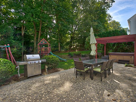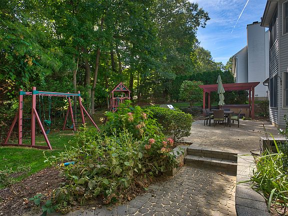 Just move in & enjoy this 5 bedroom 3.2 bath Colonial on a cul-de-sac conveniently located just blocks from NYC commuter trains and top-rated schools. This spacious home features a great open floor plan, hardwood floors, speaker system and exquisite architectural details throughout. Amazing features of this home include a sun filled two-story foyer and two-story rear entry provide a sense of space and sociability as they open to the banquet sized formal dining room, living room, eat-in kitchen with breakfast area and family room with fireplace. A first floor en-suite bedroom could easily be an Au-pair or in-law suite and powder room complete the first floor. The second level features four bedrooms, two bathrooms and laundry room. The luxurious master suite enjoys a master bathroom and walk-in closet. The lower level enjoys a media room, recreation room, exercise room, powder room and generous storage. Step outside to the professionally landscaped yard with patio. This is a home you will not want to miss!