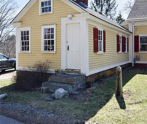 Circa 1850 Greek Revival Cape needs to be restored. 4 beds, 2 baths, 6 fireplaces ready to open and restored and 3 chimneys. Wide pine floors on second floor and oak flooring on first floor. Early hardware and doors throughout. Village setting in Chepachet with brick sidewalks and historic lighting. Lot is one of the largest (.67 acres) in village with rose bushes, perennials and mature trees. Small ell is not counted in square footage of home which was probably built before 1850 and has fireplace with bake oven. Cut granite stone entrances with boot scraper. Walk to antique shops, stores and restaurants. Same family for over 100 years. Cesspool and well. Lots of restoration going on in area. Flowerpot on front lawn does not stay with sale. antique home. No FHA or VA loan. Cash sale preferred. Highest and best by Tuesday June 20-5pm