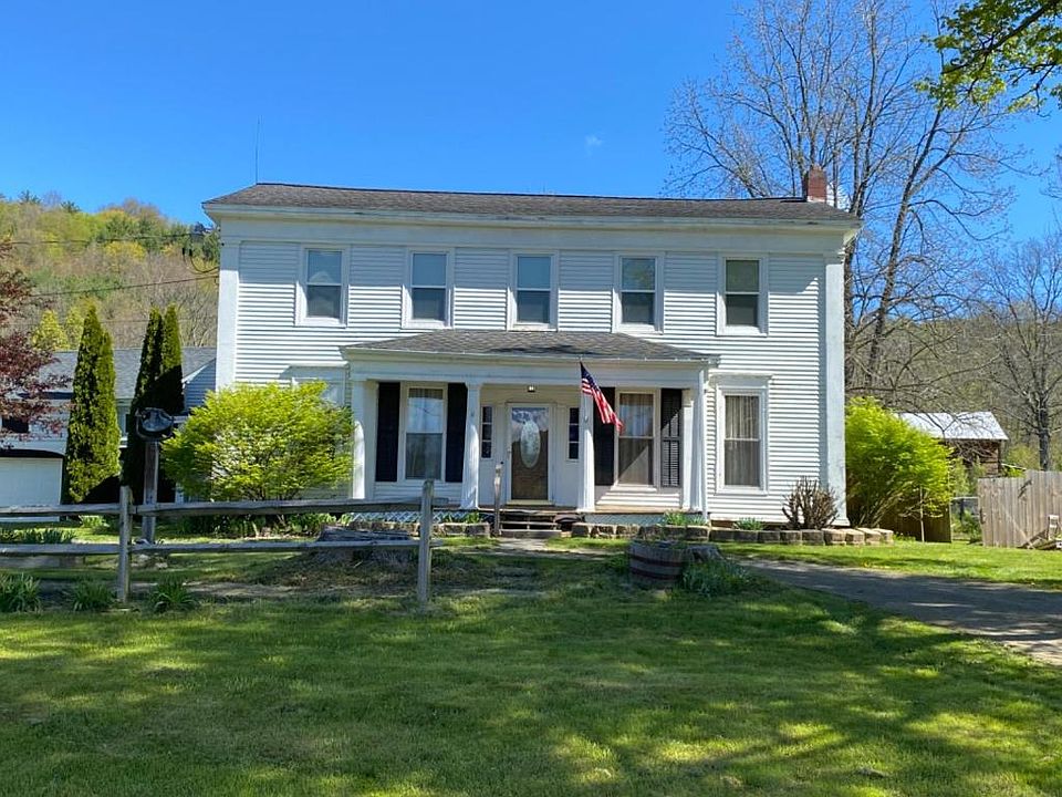 Come see this 4-bedroom 3.5-bathroom house. This property has much to offer from gardening, many fruit trees, to having a little area for chickens, horses, or other pets. Featuring a summer kitchen, central air, a separate garage (located across the street), an attached garage, workshop, smokehouse and the possibility of an apartment. Located 20 minutes from Owego and 30 minutes from Ithaca. Come and give it your touch.