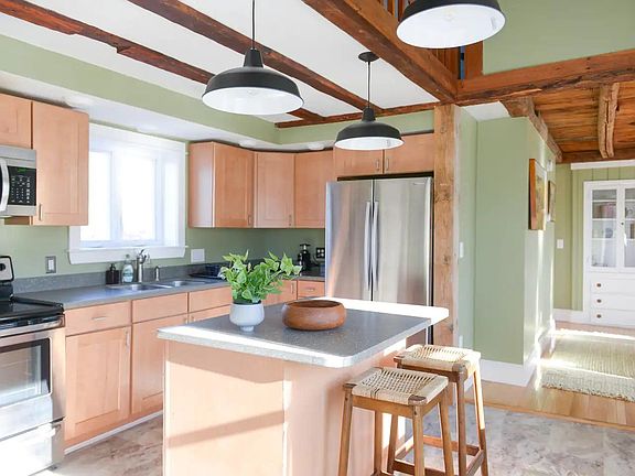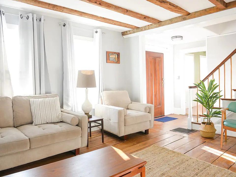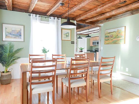 This home was built in the 1850s and has been fully updated yet still features original beams and other details to preserve its character. The first floor is spacious and comfortable with a large dining room, living room, bedroom, full bathroom, and newly renovated kitchen. The upstairs includes a full bathroom, bedroom with twin beds, reading nook, and master bedroom.