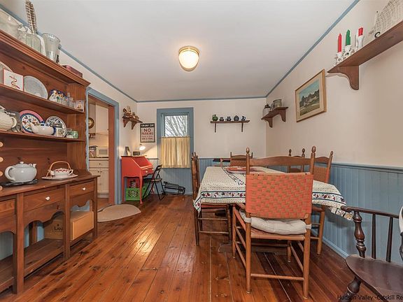 What's not to like about this 3-bedroom 2 bath home on a quarter of an acre located in the hamlet of High Falls that is walking distance to all the shops and restaurants. As you approach the home there is a Victorian style fence that outlines the front of property and the front walkway leads you to the rocking chair front porch which is made from composite decking. As you open the front door, you immediately take notice to the original wide board wood flooring and the gorgeous original wood steps that lead you up stairs from the entry foyer. Off to the right is the living room complete with built in book shelves and window seats that look out to the front yard. The dining room is outlined with wanes coating and is located right off the eat in kitchen which has been updated with a ceramic tiled flooring, updated cabinets and formica style countertops. Off the kitchen there is a breezeway that leads you into the family/great room where the ceilings are vaulted, and windows are everywhere. This offers the sense of peace and tranquility. Don't miss out on the full bath located on the 1st floor with soaking tub. Upstairs has 3 decent sized bedrooms with built in closets with the wide board wood floors still getting some of the attention, along with the 2nd full bathroom which has a stackable washer and dryer. There is a walk-up finished attic space that is not included in the square footage which offers several different possibilities. This home is truly a wonderful old-style home with some modern updates that has been loved and well taken care of over the years that needs to be seen in order to appreciate.