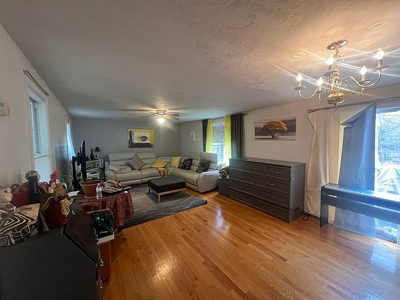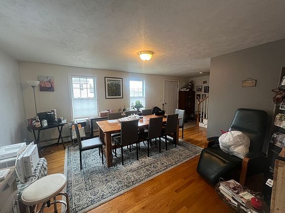 This three bedroom and one and a half bath home in the rural town of Hubbardston has hardwood floors throughout most of the first floor and an open concept living room and dining room with access to the deck and back yard through the slider. Off the kitchen there is a half bath and generously sized closet/pantry. The front family room with hardwood floors and lots of natural light is currently being used as a dining room, but could also be set up as a office or studio space etc. so this house offers multiple rooms and possibilities for entertaining on the main level. Up the hardwood stairs you will find three bedrooms and a full bathroom with the primary bedroom having a walk in closet and a second closet as well for extra closet space. This home sits on a half acre lot not with a couple businesses near by and has a mostly flat, cleared back yard.
