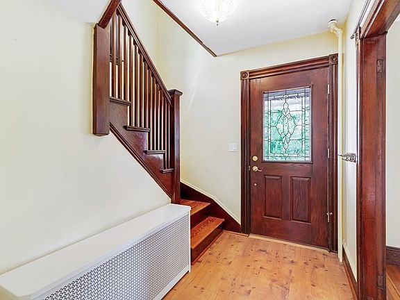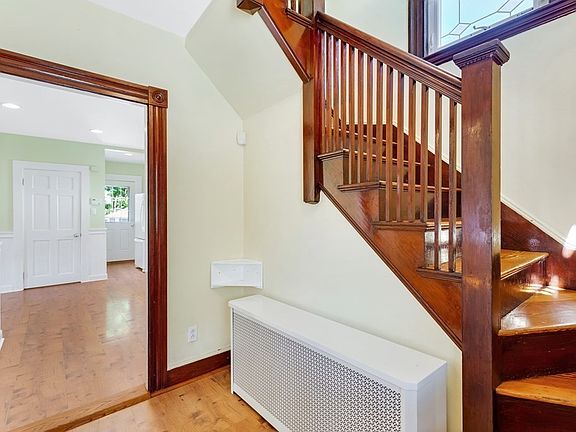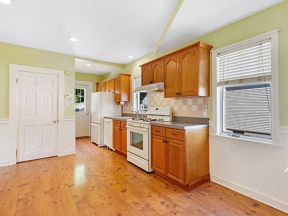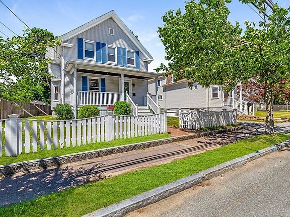 Charming New England Colonial with farmers porch very convenient to downtown yet on a residential street. Enjoy breezy evenings on the covered front porch with natural stained ceiling and summer outings and barbecues on the rear deck. Upon entering, the front foyer has a pretty winding staircase leading upstairs. The foyer, living room and dining room are all generous in size and have natural woodwork. The updated, eat-in kitchen includes modern appliances and has access to the back deck. Three ample bedrooms on the second floor. The roof, windows and siding have been updated. There is a one car garage with additional parking out back. This home is very convenient to the vibrant downtown Main Street Wakefield with all of its eclectic shops and eateries. Schedule a private showing soon.