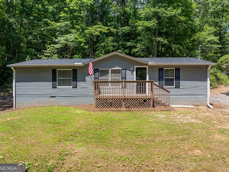 Come see this beautiful 3 bedroom /2 bath mobile home on 1.52 acres in Ellijay! Gorgeous, wooded views frame the backdrop, creating a serene and tranquil setting that invites the beauty of nature indoors. This home features All New flooring, New Roof, Appliances, light fixtures, HVAC, New Countertops in an open split bedroom floorplan. Spacious Kitchen is open to the family room with a fireplace. The side porch is off the mud/laundry room. Master bedroom, master bath with a shower/tub combo as well as a walk-in closet and large linen closet. Plenty of property and privacy to add your animals. No HOA! Terrific location with easy access to 515, access to local wineries, 10 mins Carter's Lake, 10 mins Ellijay attractions, lots of beautiful mountain hiking, 90 mins ATL Airport. Minutes from Piedmont medical facilities