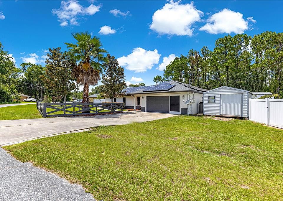 SPECIAL OFFER NOW AVAILABLE! This lot is now being offered with a BONUS PARCEL WORTH $45,000, included in the purchase price of $299,900! Stop the car, your search is over!! Your forever home is right here at 11 Pecan Pass Lp. This Absolutely Adorable 3 bedroom, 2 bathroom home with 2,001 square feet of thoughtfully designed living space in one of Ocala’s most sought-after neighborhoods has just HIT THE MARKET and is OVERFLOWING with Charm! Located in the heart of Silver Springs Shores, this beautifully updated home blends style, comfort, and energy efficiency. Step inside to the massive, open floorplan which showcases your gorgeous kitchen, the true hub of the home! Featuring expansive granite countertops, a large island bar perfect for casual meals or cocktails, and abundant cabinet space, it’s ideal for hosting holiday dinners, brunches, or game nights. The kitchen flows seamlessly into the living and dining areas, making entertaining effortless. French doors open to the stunning family room addition, filled with natural light from numerous sliding glass doors that offer easy indoor-outdoor living. The room features a split A/C unit for year-round comfort and an added bar with a built-in outdoor fridge—perfect for relaxing or entertaining while overlooking the large, vinyl-fenced backyard. Throughout the home, charming sliding barn doors add character and function. The oversized master suite includes a spacious walk-in closet and a peaceful retreat. This home boasts a new A/C unit (2022), top-of-the-line Pella windows, and a roof with fully PAID-OFF solar panels (2020), providing energy efficiency and long-term savings. A covered carport offers extra parking and is ideal for storing a boat, trailer, or recreational toys. Additional storage is available in the shed. Located just minutes from Walmart, Publix, Walgreens, and the popular Baseline Trailhead Park, great for hiking, biking, and picnics. Families will appreciate nearby schools, and commuters will love easy access to SE Maricamp Road for a quick trip to downtown Ocala. Outdoor enthusiasts will enjoy being close to Silver Springs State Park, known for kayaking, glass-bottom boat tours, and scenic trails. Lakes, golf courses, and equestrian facilities are also nearby, making this location perfect for an active lifestyle. This isn’t just a house—it’s a thoughtfully upgraded, energy-efficient entertainer’s paradise ready to welcome you home. Don’t miss your chance to own this Ocala gem—schedule your private tour today! (One shed and 2 carports included). Swim spa does not convey but open for negotiation). Call to schedule your showing today!