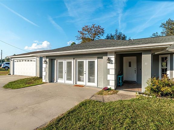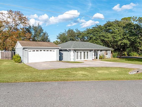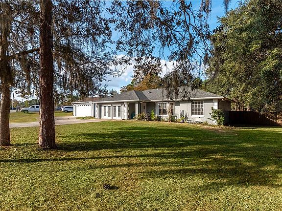One or more photo(s) has been virtually staged. Welcome HOME to this beautifully maintained property located in one of SE Ocala’s most desirable neighborhoods. From the moment you step inside, the REAL HARDWOOD floors and soaring cathedral ceilings create an open, inviting atmosphere as the living and dining areas flow seamlessly together, elevated by updated light fixtures and an impressive EXTRA-large ceiling fan that brings both style and comfort to the space. A beautifully designed upgraded BARN DOOR separates the main living area from the secondary bedrooms—adding both privacy and a modern custom touch. Elegant French doors off the dining room lead to the covered back patio, perfect for morning coffee, weekend barbecues, or unwinding after a long day. At the heart of the home, the kitchen shines with recessed lighting, granite countertops, stainless steel appliances, a breakfast bar, and a clean modern tile backsplash, while hardwood flooring carries throughout the main living areas and hallways for a warm, cohesive look. The primary bedroom offers hardwood flooring, a walk-in closet with barn doors, tile flooring in the bathroom, and a walk-in shower, and a separate indoor laundry room adds everyday convenience. The enclosed garage expands your living possibilities—ideal as a movie room, home gym, playroom, hobby space, or flex room—and includes a storage closet to help you stay organized. This layout also provides comfortable OPTIONS for aging Loved Ones or MULTIGENERATIONAL LIVING, allowing them to remain close and cared for while still enjoying their own peaceful, private space. The home has been thoughtfully updated with meaningful improvements, including a 2022 ROOF, 2025 HVAC, NEST digital thermostat, NEST doorbell, driveway camera, and updated lighting throughout. Situated on .35 acres, the property also includes a detached 2-car garage with electric and a garage door opener (no remote) for ALL your storage needs; plus, the backyard features security lighting, gutters, a 16-foot above-ground pool with a cartridge filter, a 10' x 14' covered patio, and a beautifully landscaped corner lot. A wood privacy fence creates a serene and secure retreat—perfect for pets, entertaining, or relaxing by the pool. With NO HOA and the Marjorie Harris Carr Cross Florida Greenway Trailhead just minutes away, this home offers comfort, convenience, privacy, and an unbeatable location. This ONE won’t last LONG—schedule your private tour today!