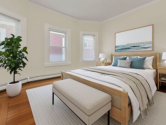 Rare Winter Hill Victorian condominium on a corner lot. Big 3 bedroom, 2bath unit with 2-car parking and gorgeous wood floors. Oversized fireplace living room open to dining with bay windows or use pocket doors as formal dining. Fully applianced kitchen with wood cabinets, stainless steel appliances and separate eating area with chandelier and space for a table. Coveted first floor bedroom and full bath round out this floor. The lower level offers a gorgeous staircase and two additional bedrooms and full bath. Each bedroom has a big walk-in closet with great storage. Winter Hill offers a leafy streetscape yet is just minutes to new Green Line extensions and Davis Square with all the dining, shopping and nightlife for which it is known. Easy commuter options to Tufts University, public transit and roadways in and out of Boston and beyond. Don’t miss out on a great unit in an awesome location!